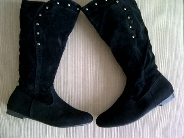 **Cute & Funky Ladies Long Black Boots with studded design**Size 4, 5, 6, 7, 8 ONLY**BRAND NEW***