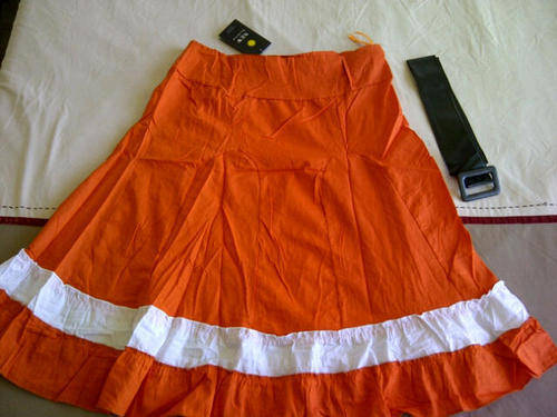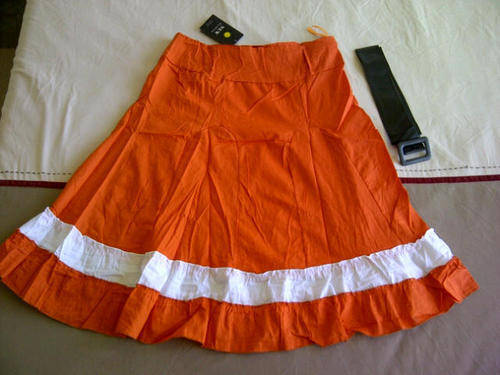 Cute & Funky Ladies Orange/White Skirt with leather look belt, light and great for summer...