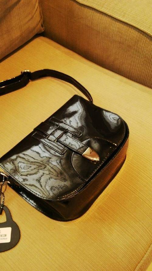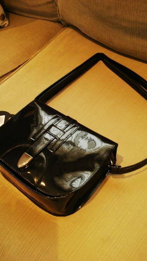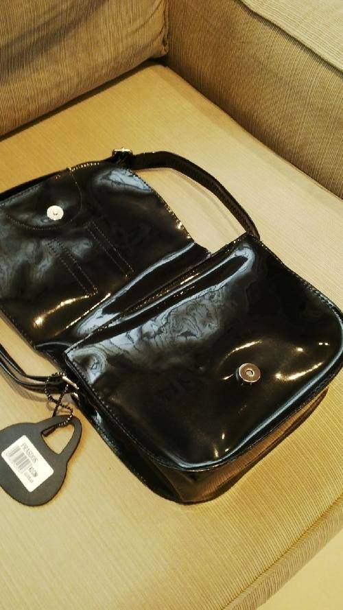 Cute Ladies Black Gloss PU Leather Slingbag With Beautiful Detail & Design, really pretty piece...