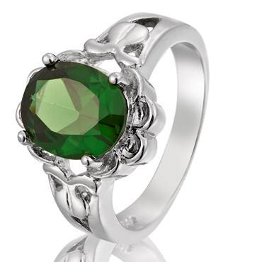 **DESIGNER WHITE GOLD OVAL CUT GREEN EMERALD COCKTAIL RING**