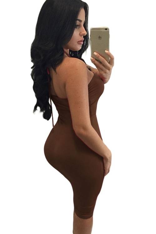 *DIVA RANGE* Little Bown - Halter Lace-up Bust Hollow-out Club Party Midi Dress
