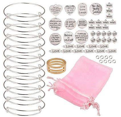***DIY*** 10pcs Expandable Wire Charm Bracelet / Inspirational Charms / Making Kit