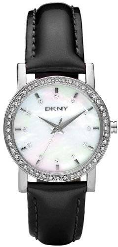 DKNY BLACK LEATHER CRYSTALLIZED LADIES WATCH