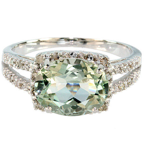 **** EARLY VALENTINE SPECIAL *** FINE SOLID 9KT WHITE GOLD 2.82CT GREEN AMETHYST & DIAMOND RING