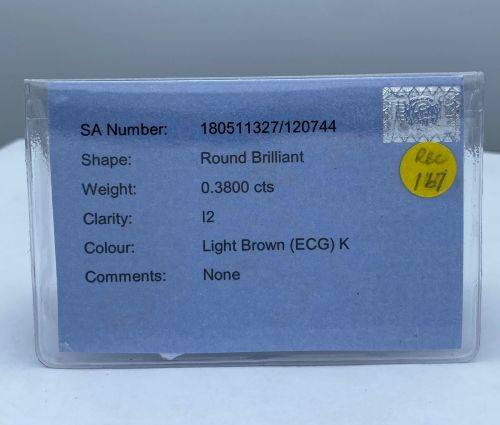 GEMSTONES DETAILS - CERTIFIED NATURAL DIAMOND - 0.38CT - COLOR K - CLARITY I2