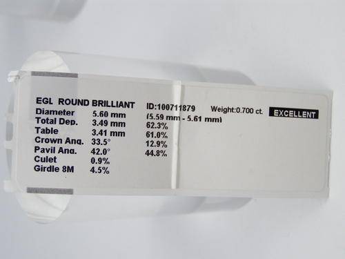 The diamond has been certified by and independent grading laboratory, EGL, for your peace of mind.