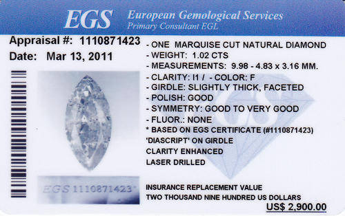 ***EGS CERTIFIED *** BEAUTIFUL1.02ct F COLOUR MARQUIS DIAMOND STARTING AT ONE RAND NO RESERVE