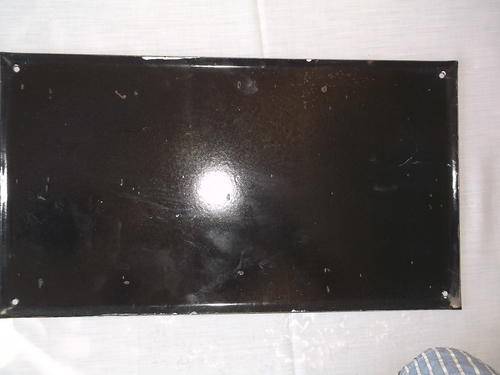 Dik metaal met swaar duursame emalje. Die bord is op die kante so effens ingebuig sodat die agterkant nie aan die muur raak nie. In pragtige toestand en beslis baie versamelwaardig.