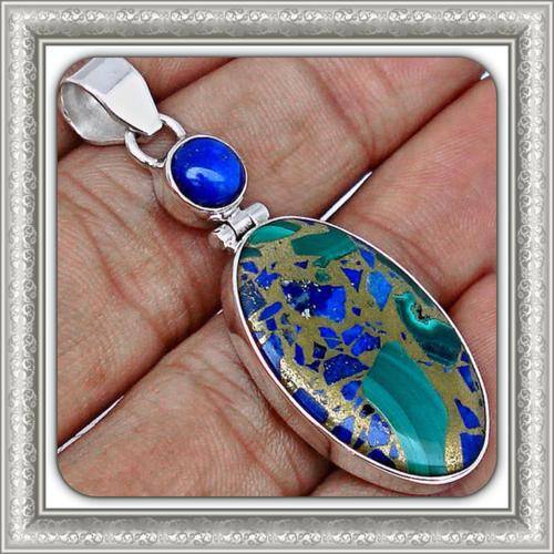 ***ENCHANTING AND UNIQUE*** NATURAL GREEN MALACHITE IN LAPIS LAZULI 925 STERLING SILVER EARRINGS
