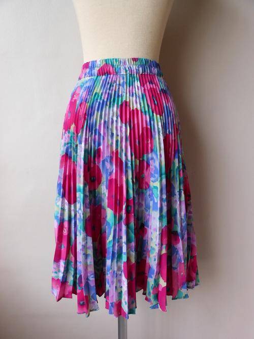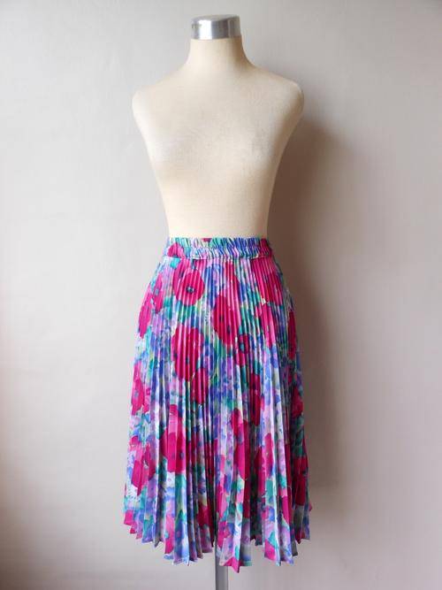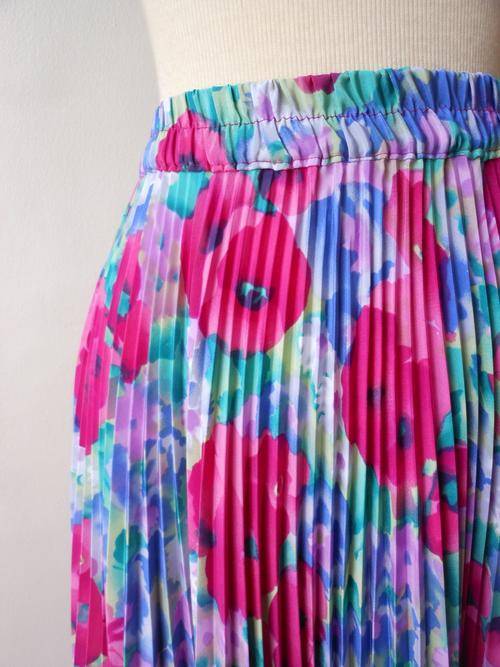 *END SEASON SALE* VINTAGE PLEATED FLORAL PRINT ELASTIC SKIRT - SIZE MEDIUM