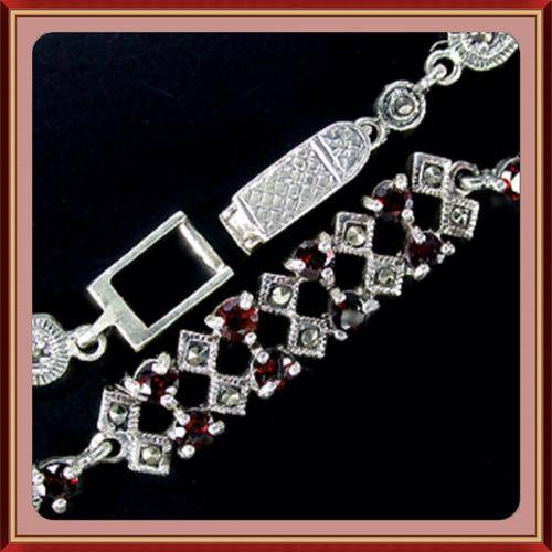 ***EXCEPTIONAL*** - Marcasite 925 Silver Bracelet ( 74.50 TCts - natural garnet)