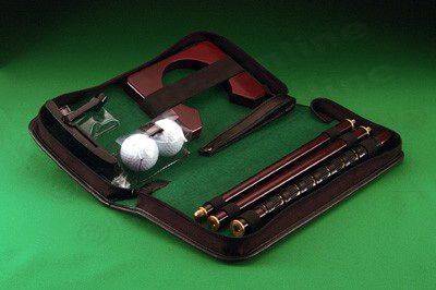 4 Piece screw - together putter, 2 balls, and a wooden "hole".