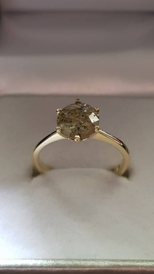 14ct yellow gold Solitaire Salt and Pepper diamond ring,approximate total weight of diamond 1.30ct