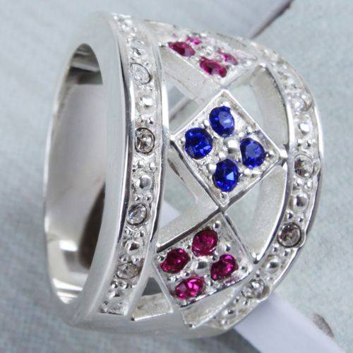 **EXQUISITE**FINE SILVER**Multi-Gemstone Broad Band Dress Ring***Size 7/8**