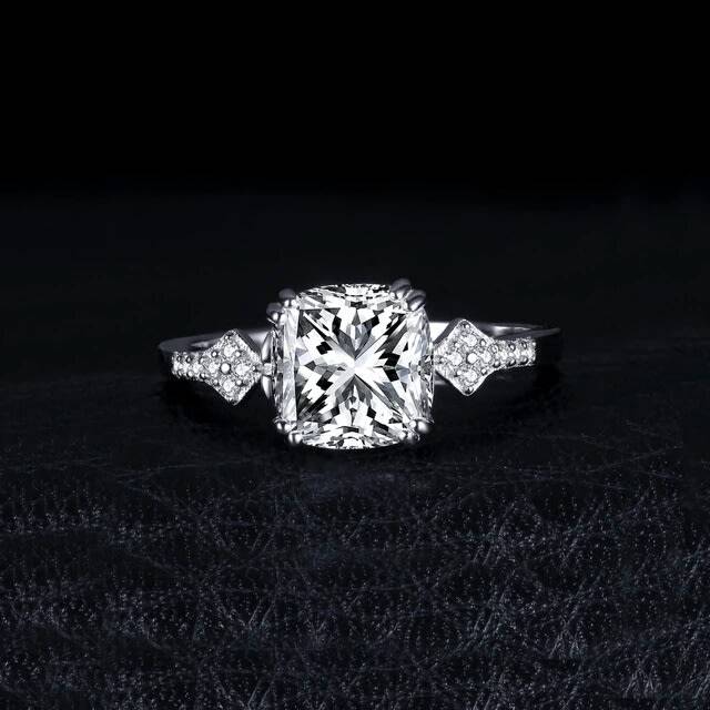 Occasion: Wedding, Party, Gift, Engagement & Anniversary Main Stone Colour: White Metals: Sterling Silver Material: Cubic Zirconia Stone Quantity: 15 Shape: Cushion Stone Size: 2.92ct(8mm*8mm) Ring Size: M/6/16.51mm in Diameter