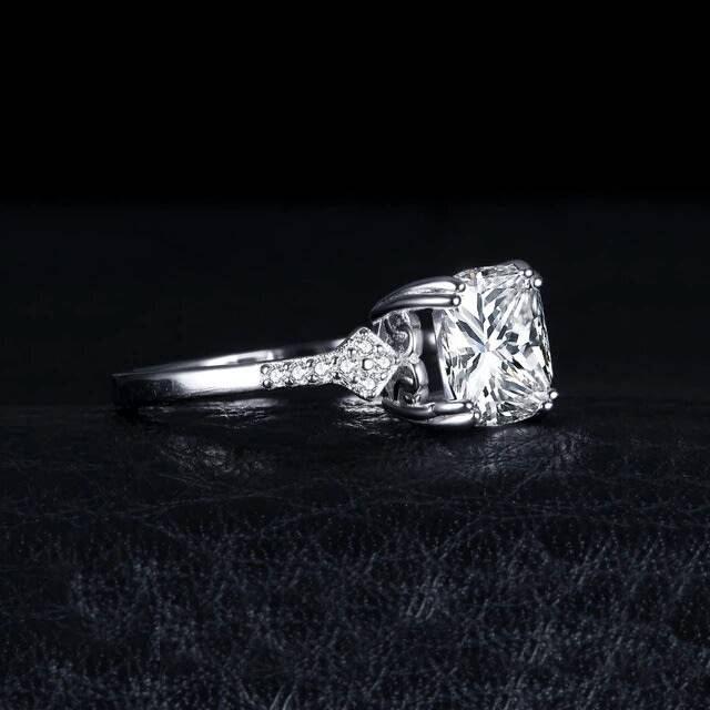 Occasion: Wedding, Party, Gift, Engagement & Anniversary Main Stone Colour: White Metals: Sterling Silver Material: Cubic Zirconia Stone Quantity: 15 Shape: Cushion Stone Size: 2.92ct(8mm*8mm) Ring Size: M/6/16.51mm in Diameter