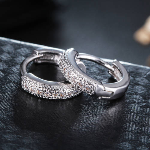 EXQUISITE WHITE GOLD PLATED SMALL HOOP EARRINGS WITH CUBIC ZIRCONIA