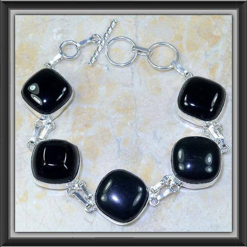 ***FASHIONABLE AND TRENDY***LARGE BLACK AGATE .925 SILVER RING SIZE 8