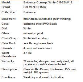 Exclusive models from Calvaneo 1583 are Quartz chronograph or Automatic watches using Swiss or Japanese movements (ISA, Ronda, ETA, Miyota).