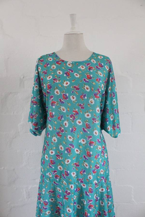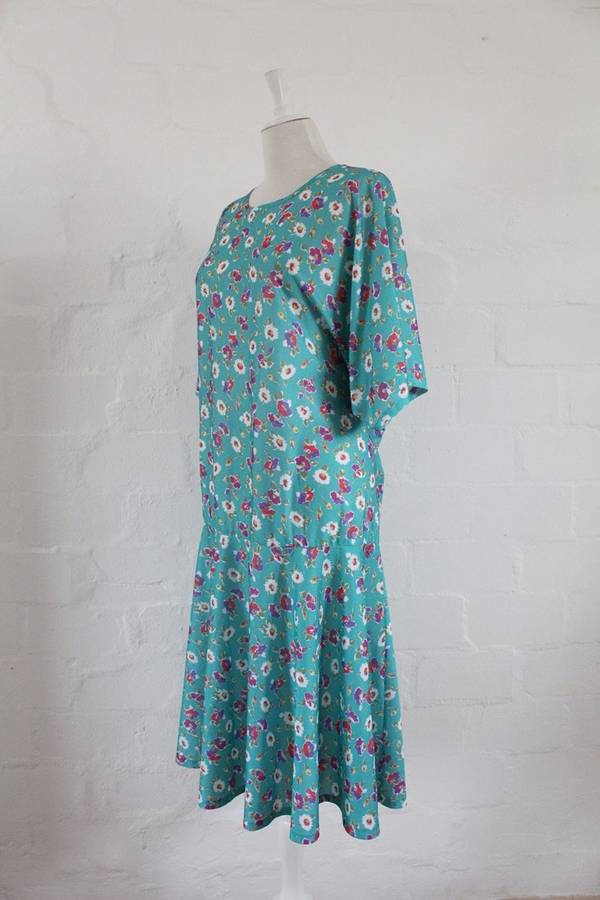 *FLASH SALE - 50% OFF!* VINTAGE FLORAL PRINTED GREEN PINK DROP WAIST DAY DRESS - SIZE 22