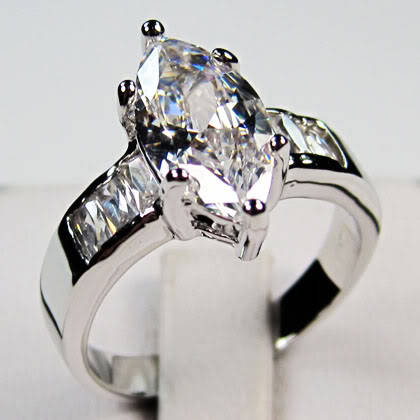 * Flawless White Sapphire 10KT Solid White Gold Ring Size 8 / Q*