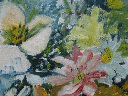 Irma works mainly in oils on stretched canvas, applying the paint with bold brush strokes in an impressionistic way.
