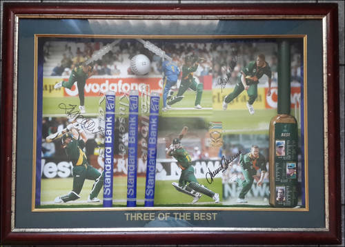 ***FRAMED*** SIGNED BY 3 LEGENDS OF CRICKET - JACQUES KALLIS , LANCE KLUSENER, SHAUN POLLOCK - FANTASTIC PIECE***