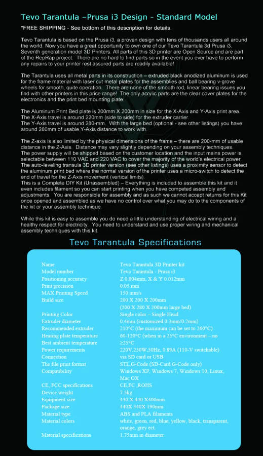 **Free International courier** Newest TEVO Tarantula I3 KIT + Extras