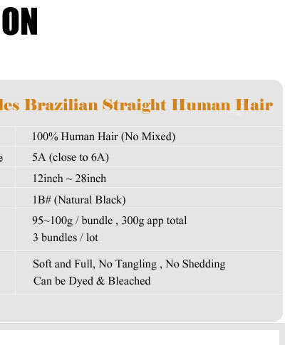 [Free Shipping] 5A Brazilian Straight Human Hair 3 Bundles/Lot 300g 12"~28" Natural Black