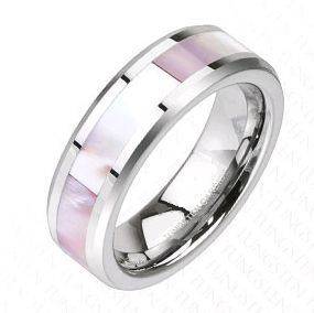 **FREE SHIPPING!!**Brand New Item!**Tungsten Carbide Pink Mother of Pearl inlay wedding band