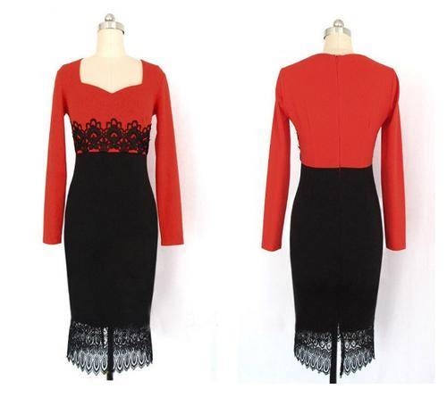 (Free shipping)Women's OL Lace Long Sleeve Dress