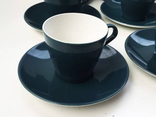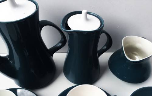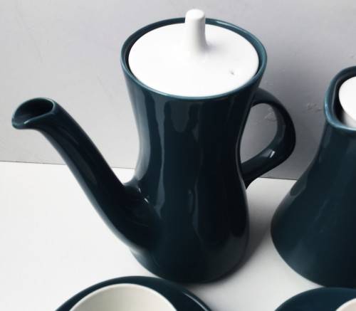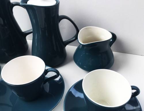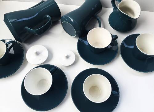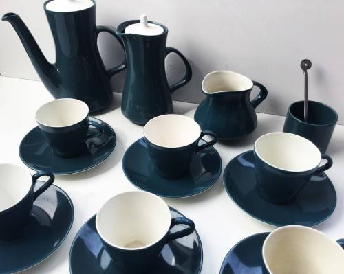 Hi there, I have this exquisite Poole English ware coffee set, the set consists of one pot for coffee, the other for hot water, a milk jug, a sugar pot and six cups with their accompanying saucers. No piece has a single crack or chip, I have checked each piece personally. Full sets in this kind of condition are very rare these days, the individual pieces of this set sell for R300+, so a full set sells for many thousands! Secure postage for this set is R150, that is the Postnet to Postnet special, please only serious bidders, Good Luck!!