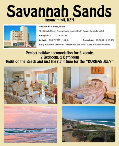 *** SAVANNAH SANDS AMANZIMTOTI KZN ***