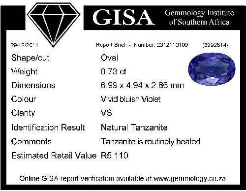 | Weight: | 0.73 Ct. | Treatment: | Lightly Heated |