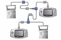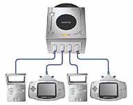 | With separately sold cables, you can connect the Game Boy Advance SP to other GBAs for multiplayer gaming (above) or to the Nintendo GameCube (below) to access secret levels, exchange data, or use other special features that vary from game to game. |