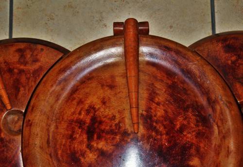 1 X ORIGINAL ANTIQUE SET OF 8 BLACK WOODEN BACKGAMMON CHECKERS (6 MISSING )
