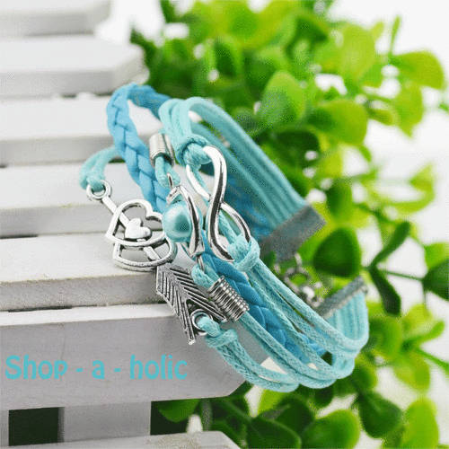 ***GENUINE LEATHER BRAIDED CHARM BRACELET - LOVE ARROW BABY BLUE ***