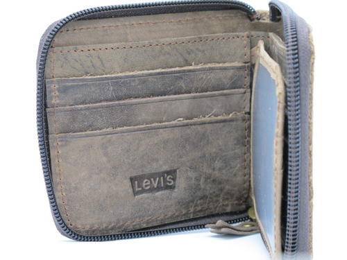 *** Genuine Leather *** Levis ( UniSex ) *** BROWN ZIPPER *** SIM CARD STORAGE *** Wallet ***