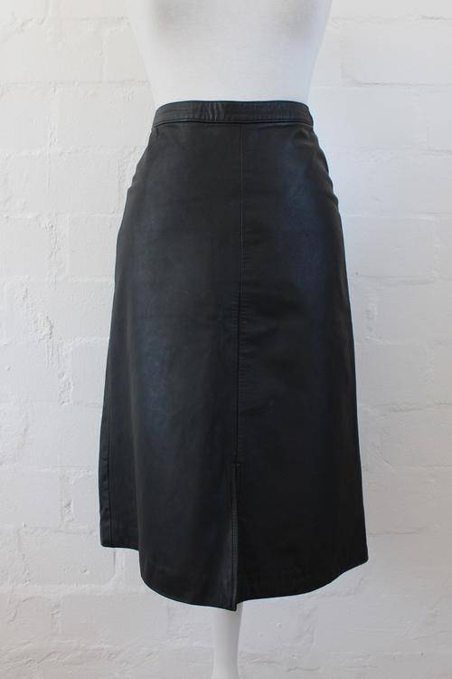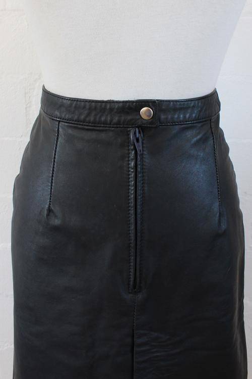 *GENUINE LEATHER* VINTAGE BLACK PENCIL SKIRT - SIZE 8