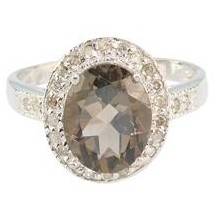 ***** GENUINE SMOKEY TOPAZ AND DIAMOND RING SOLID 9KT WHITE GOLD**** NO HIDDEN COSTS
