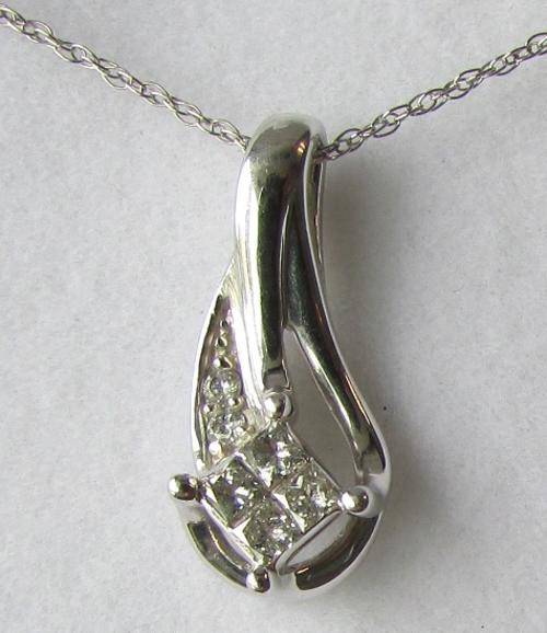 **GLITTERING [R23679]** DIAMOND PENDANT [0.249ct] PRINCESS CUT [WHITE GOLD] + FREE CHAIN - BUY SAFE