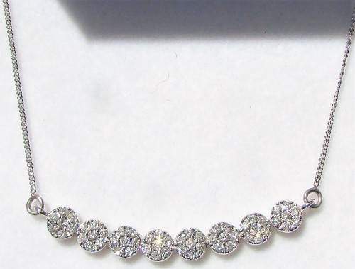 This necklace has an Italian design with the finest of workmanship. It has 8 circles with each circle forming a cluster of diamonds. A once-off masterpiece. Bid now or loose out.