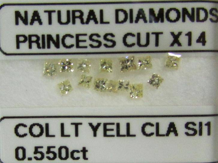 Gorgeous Fancy Light yellow diamonds in princess cuts. These are extremely pricey and difficult to match. A real bargain for the winning bidder. Usually added to higher end boutique jewellery.