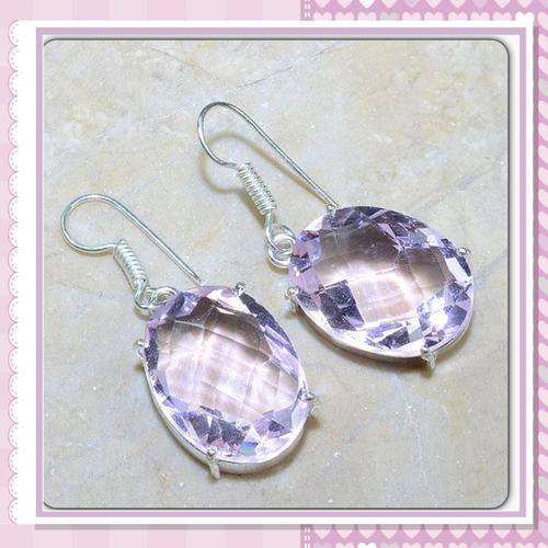 SOFT PINK TOPAZ OVAL EARRINGS !