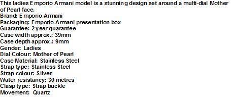 **GORGEOUS**Ladies Emporio Armani Mother of Pearl watch*R5499*