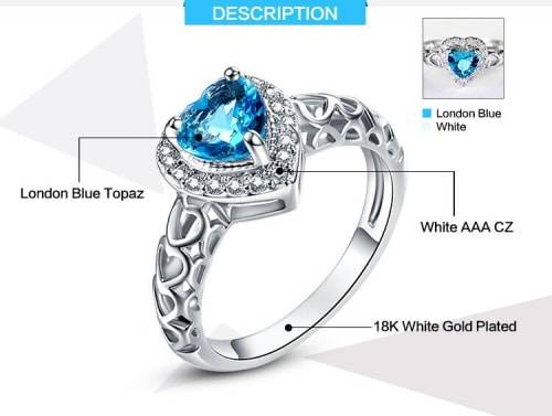 Material: London Blue Topaz Heart with AAA White CZ diamond, 18K White Gold Plated