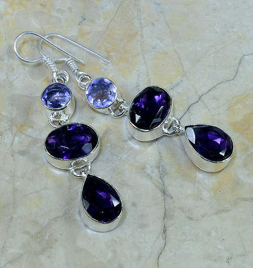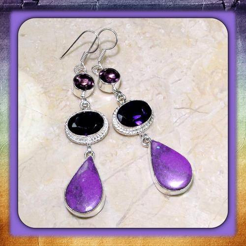 .***GORGEOUS!!*** MOSAIC JASPER & AMETHYST .925 STERLING SILVER EARRINGS