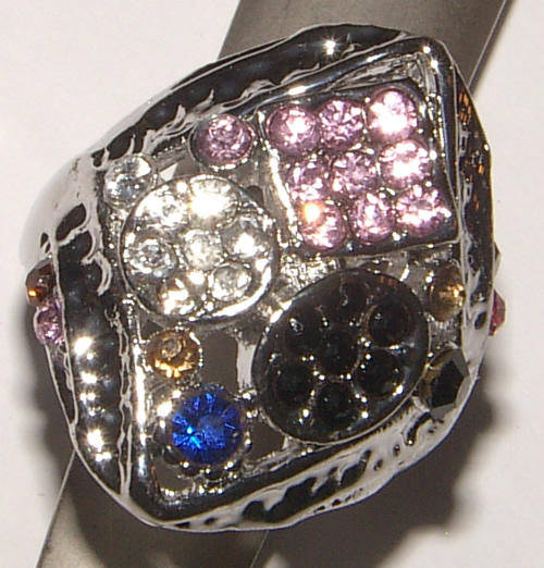 RING SIZE - R½ / 9 ELECTROPLATED SILVER - EXCELLENT QUALITY! SPARKLING ROUND CARNIVAL RHINESTONES WIDTH ON TOP - 27mm