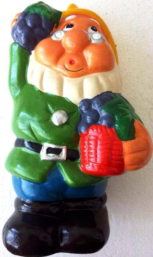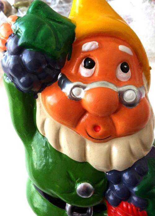 "Grapes galore!" ADORABLE CHEERFUL BRIGHT-EYED GARDEN GNOME! Approx. 20cm H