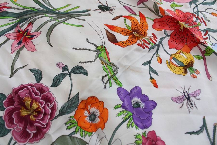*GUCCI* V. ACCORNERO DESIGNER VINTAGE 100% SILK FLORAL GREEN SCARF